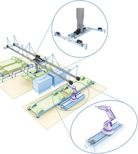 將機器人底座安裝在直線執(zhí)行器、滾珠絲杠和Micron行星減速機的一體化設備上,就可以即刻擴展任何一處工作場所。另外,機器人還能操縱移動中的底盤。