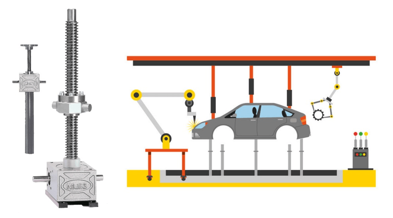 今天我們要給您介紹的是我們的大負(fù)載的螺旋升降機(jī)在汽車(chē)生產(chǎn)線的垂直和水平方向的應(yīng)用。