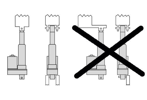 側(cè)向負載會推動執(zhí)行器組件錯位。伸縮管與套管發(fā)生摩擦。滾珠螺母無法沿絲杠平穩(wěn)移動。齒輪甚至可能會損壞。它可能通過約束對執(zhí)行器造成驗證、無法修復的損壞。